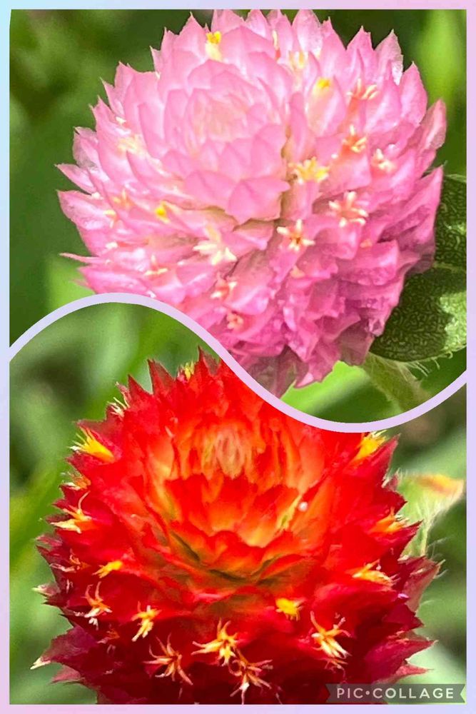 日々草も爽やか、千日紅キラキラ星が可愛い💕