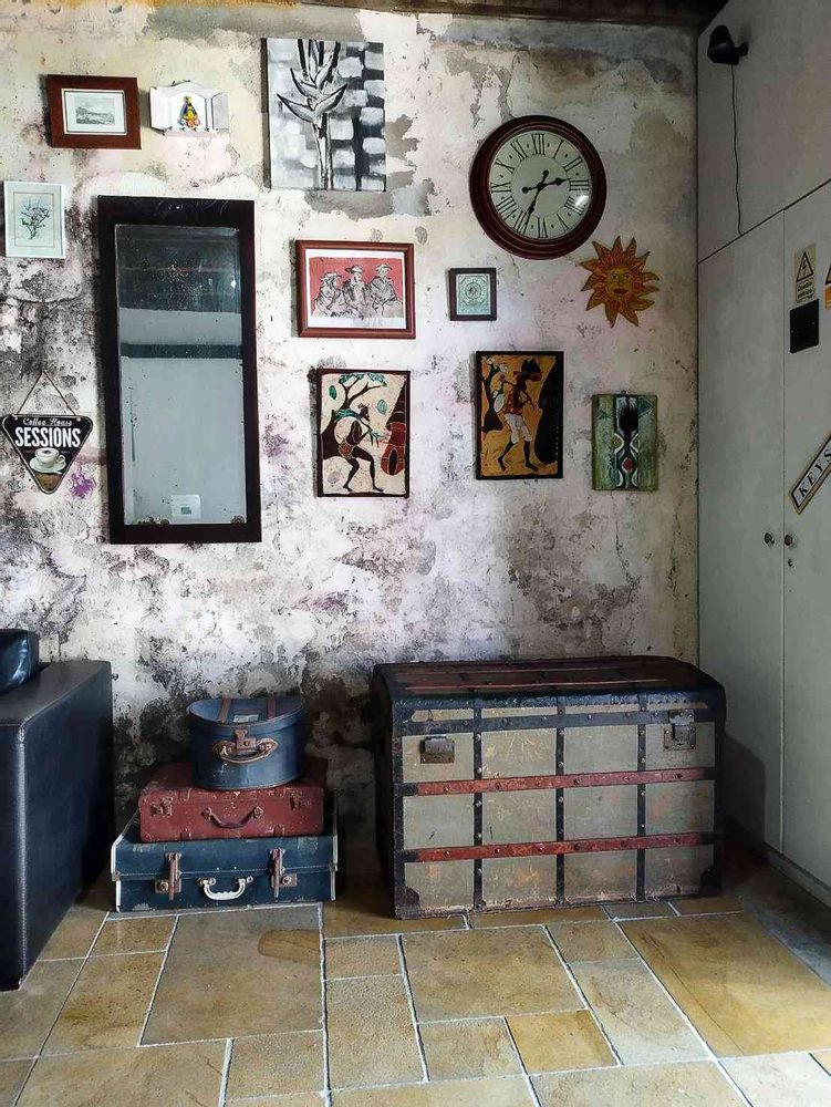 カフェの壁に飾られている絵やオブジェは