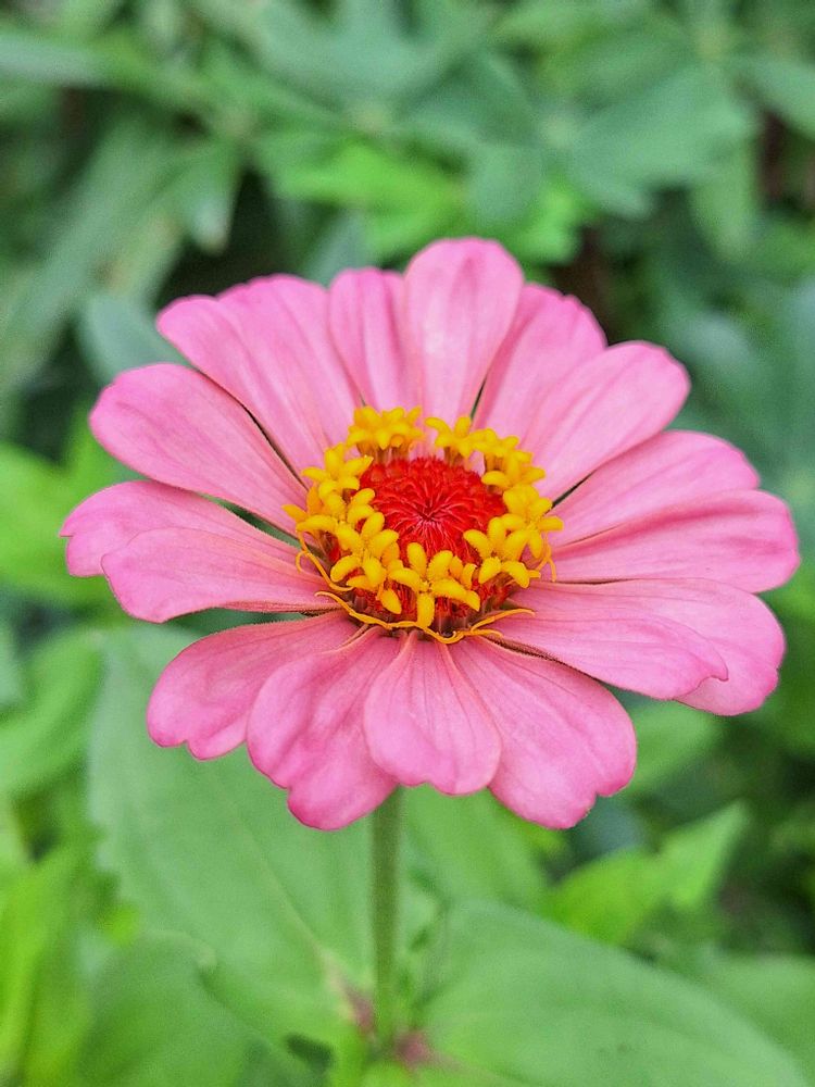 パステルカラーのヒャクニチソウから種をとったのに、今回咲いた花ははっきりくっきりした色です💦
