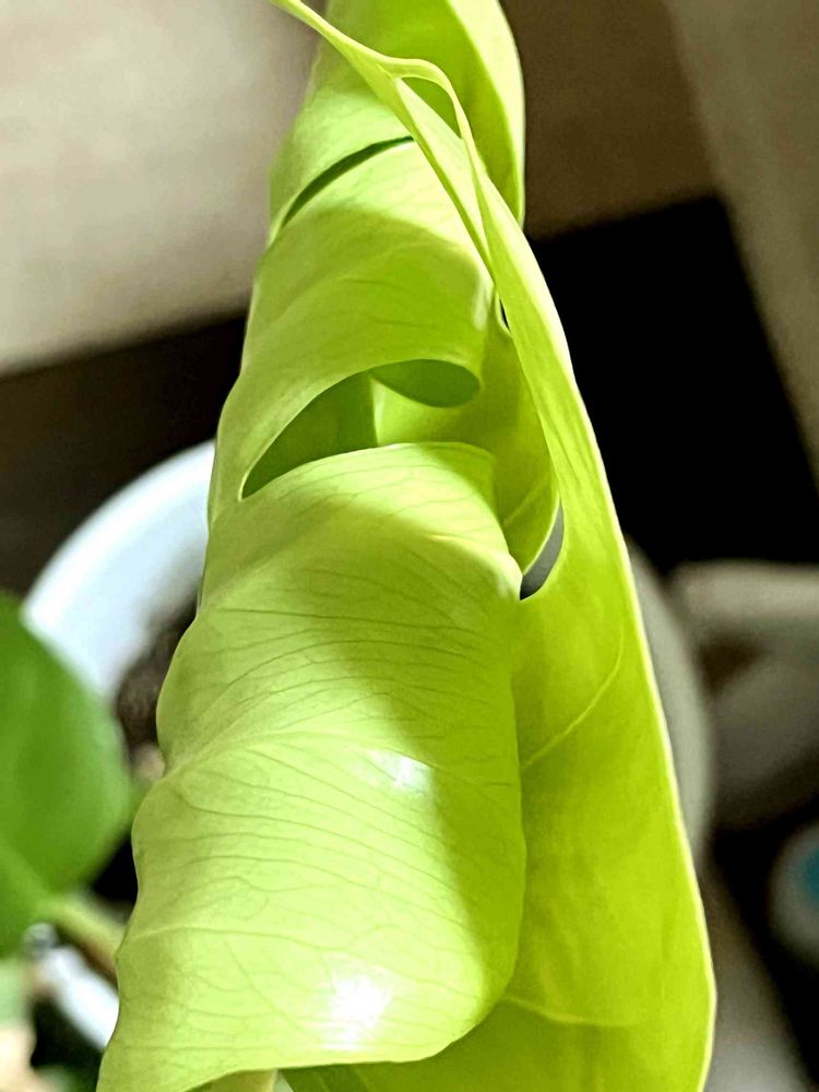 4年になるモンステラの若葉が、開こうとしてます。