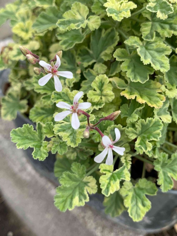 百合子さんのお庭、知らないハーブ🌿がたくさん。ナツメグゼラニウムマーブルレモン!ナツメグの香りとレモンの香り?