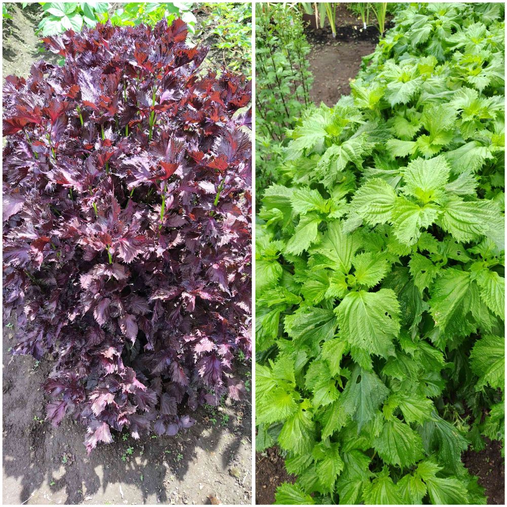 左が梅干し用の赤紫蘇、右が薬味用にはとても使い切れない青紫蘇…😮💨💦