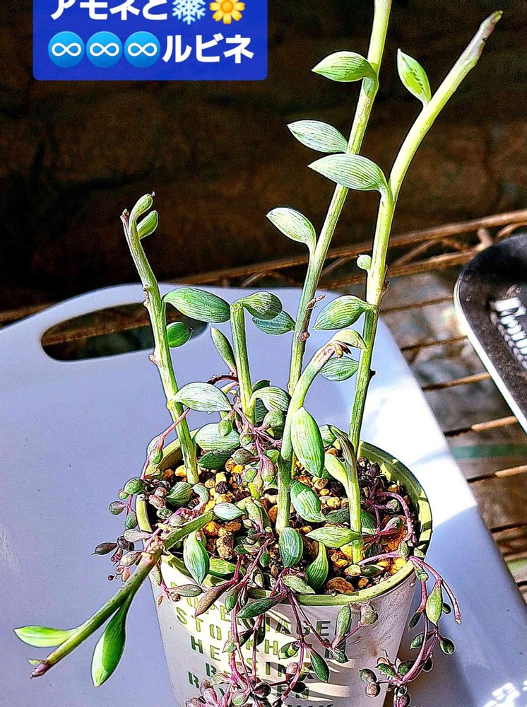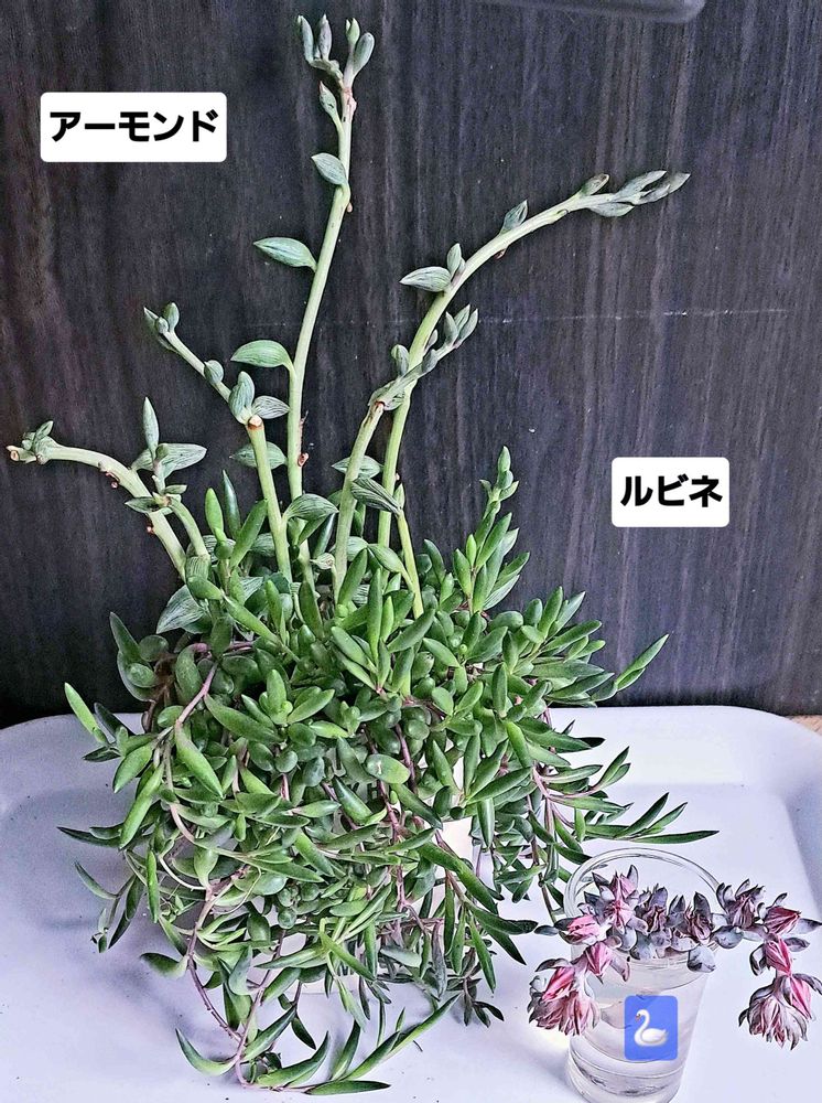 1/2 現在🗓️ルビネが早くもモリモリ、アモネもツンツン❗ 右下は🦢白鳥 E.の生花🍹
