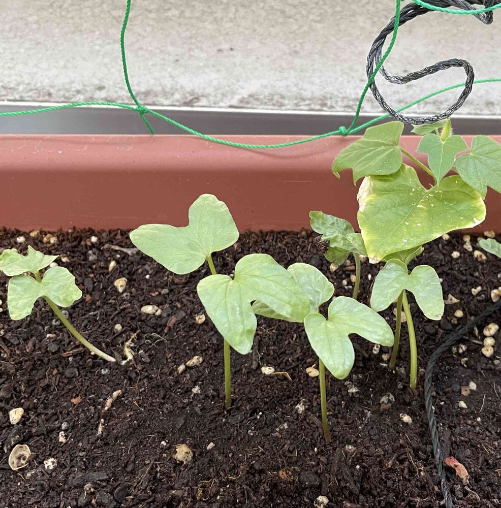 今年の朝顔は、去年、一昨年と比べてかなり🌸少なめなので、二毛作?にしました😆