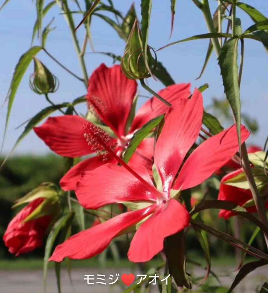 真っ赤なモミジアオイ❤️ 夏らしいお花ですね〜なんか 元気になるわ😃