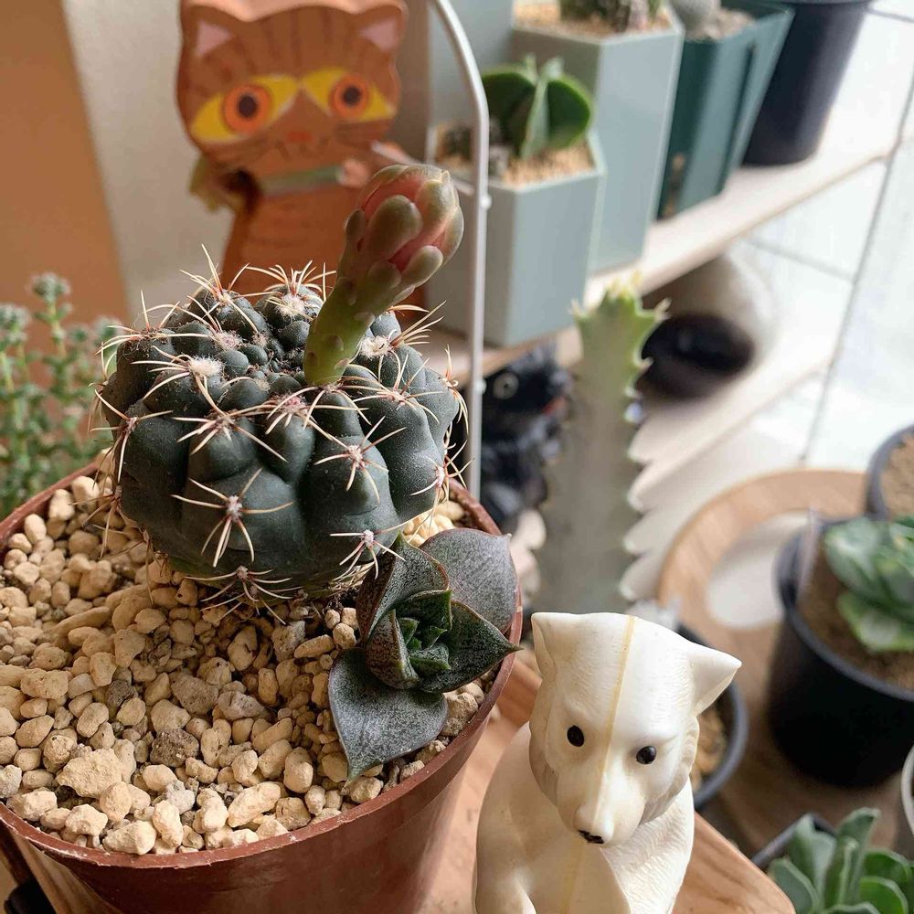 突然サボテンに興味が出て入手 「大きくなってきた」と喜ぶも実は枯れそうになっていると気づき、あれこれ調べなんとか危機回避 その復活したサボテンのグリーンの美しさに感動。同時に達成感も素晴らしく調子にのって徒長しまくる私、どんどんハマり中です。 皆さんのグリーンも拝見したく登録しました、よろしくお願いします。