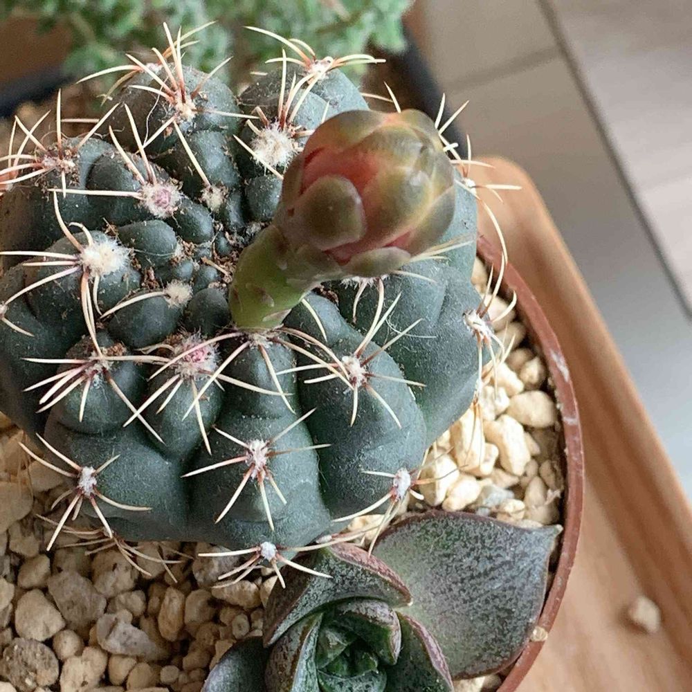 お土産サボテン名無しさんのグー✊が、、いよいよふくらみ、また色づいてきました