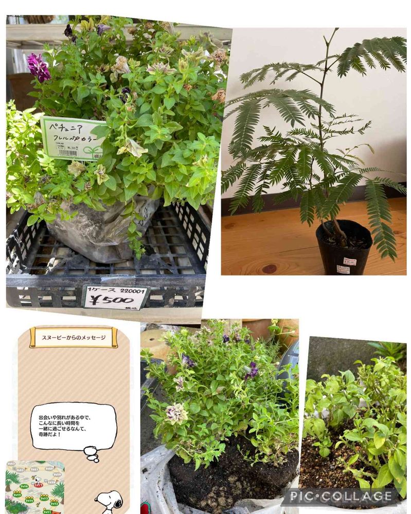 お値打ちコーナーでペチュニアが肥料袋に入って結んでありました
