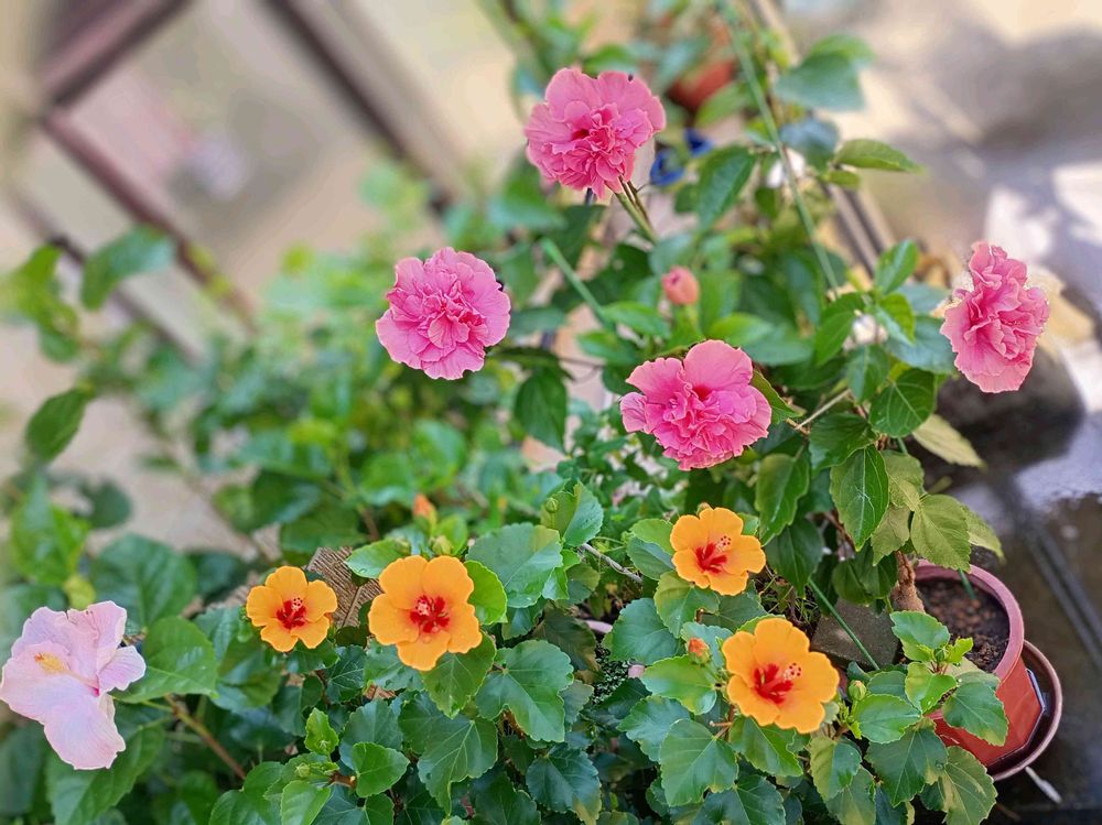 今日は我が家、「ハイビスカス祭り」❓かと想う程、アレコレとよく咲いてます
