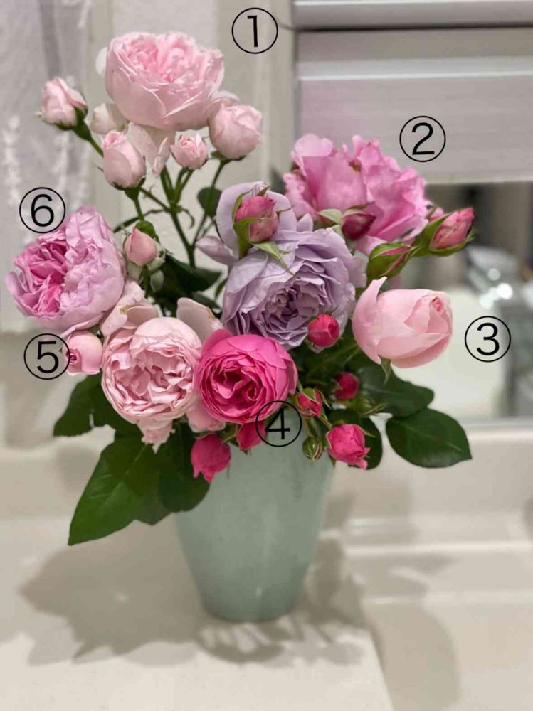 2枚目の⑤のバラ、夏バラだし小さいからこれを見ても種類分かりませんね💦