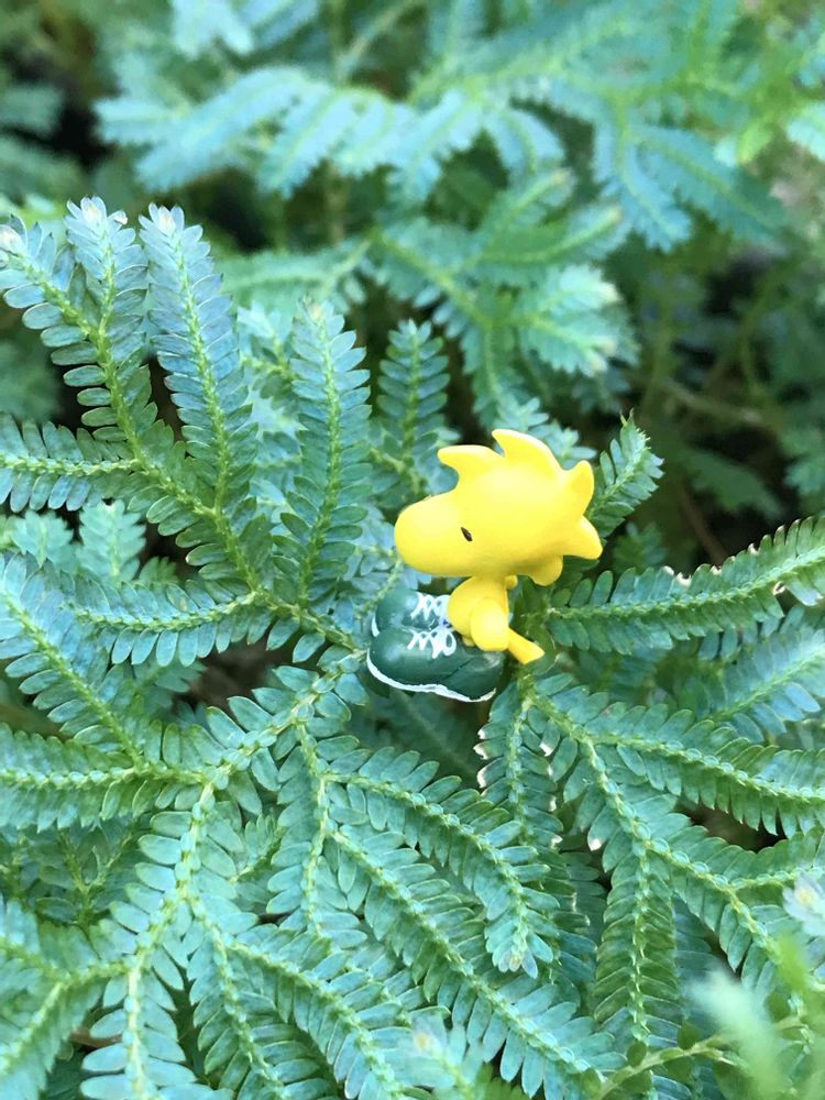 ウッドストックも みどりの お靴をはいて レインボーファーンの 葉っぱ🌿の上を お散歩🚶♀️