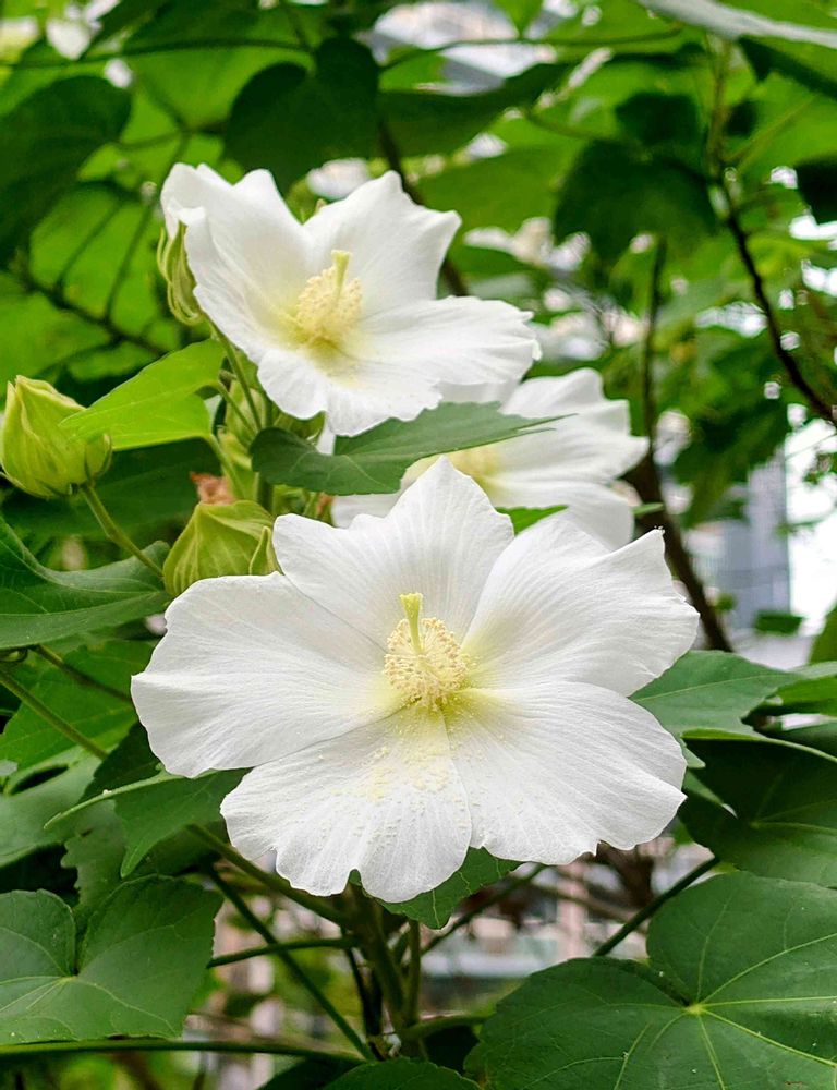 猛暑の朝、通勤途中に見かけたフヨウ。