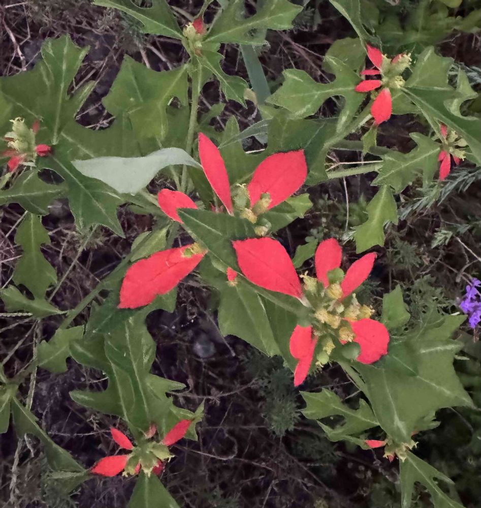 ショウゾウソウ❤️💚、ポインセチアみたいだなと思っていたら、解説読んだら“サマーポインセチア”とも言うんですね👍✨まさに夏のポインセチアですね。