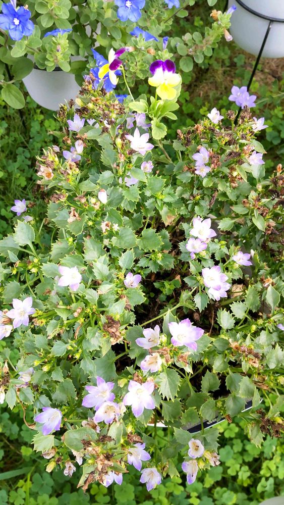 うちのビオラさん、種がとれないなぁって思っていたら、カンパニュラファンシーミーの中で咲いていました😱
