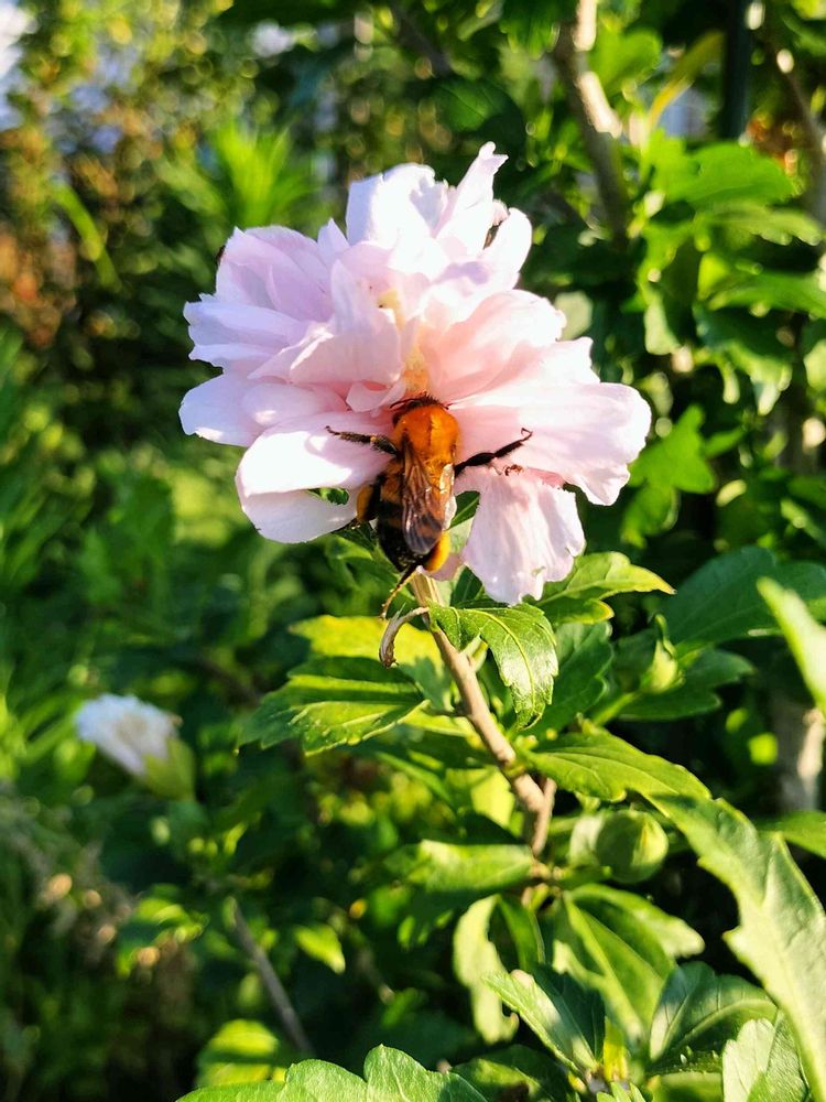 今朝の庭の花です。早起きしたので犬の散歩行って、帰ってきたら汗だく。既に暑いです。ミツバチさん達は勤勉ですね。