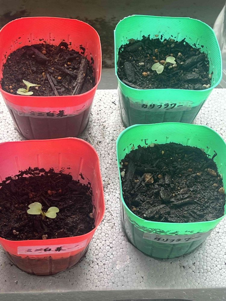 種まきから3日後に発芽は出揃い、1苗1ポットにして育てています。