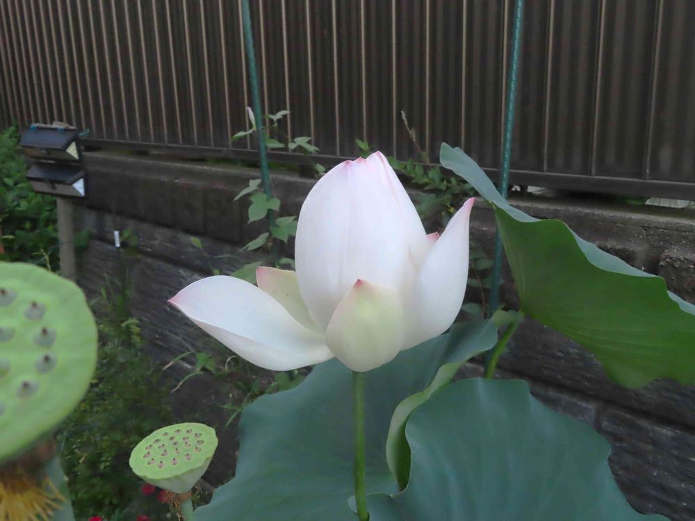 玄関口で、鉢に植えられた「ハス」が綺麗に咲いていました。 パチリ
