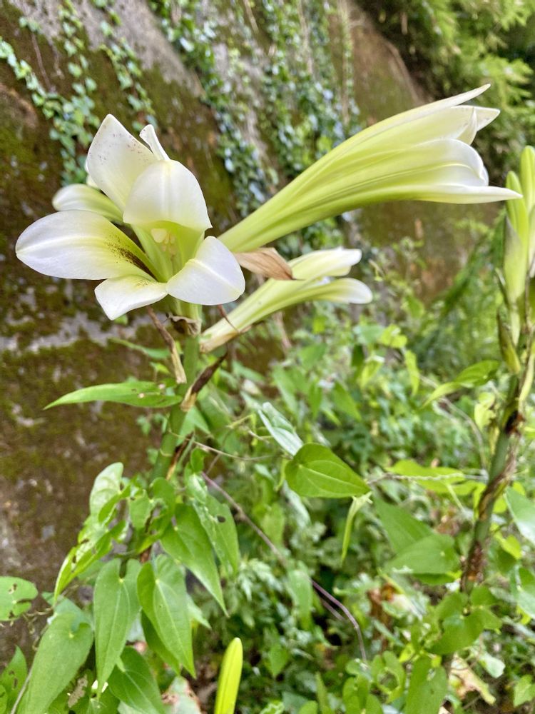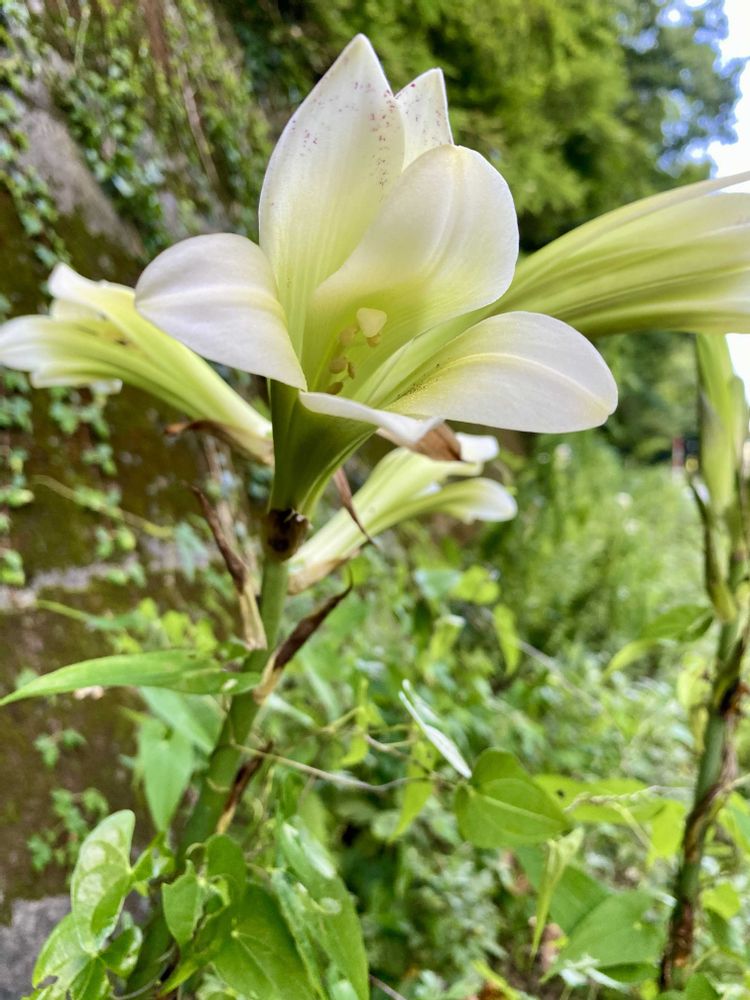 テッポウユリに似た白い花を咲かせるが葉は大きく異なる。花が満開になる頃には葉が枯れてくる事が多いため、歯(葉)のない「姥」に例え名づけられたそうです。