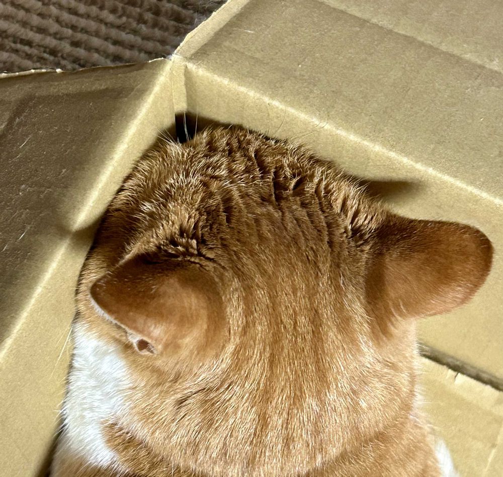 ナミ😽は📦の角に顔を埋めて寝てるよ…ここピンポイントで🤣