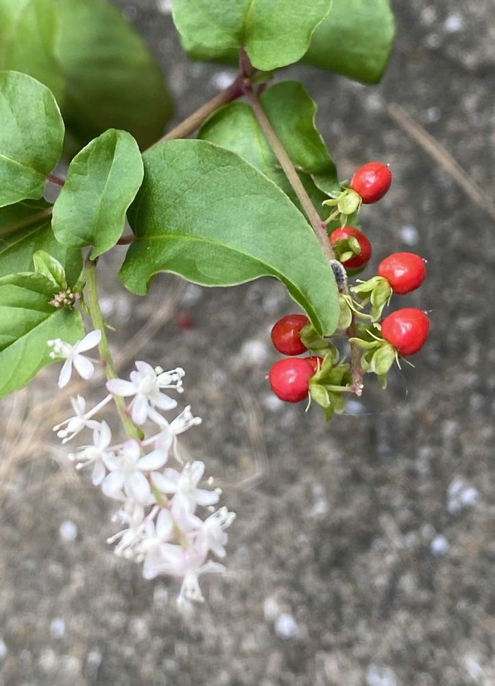 お花と実を一緒に楽しめる、日の丸と同じ色合いのジュズサンゴ🇯🇵🥰