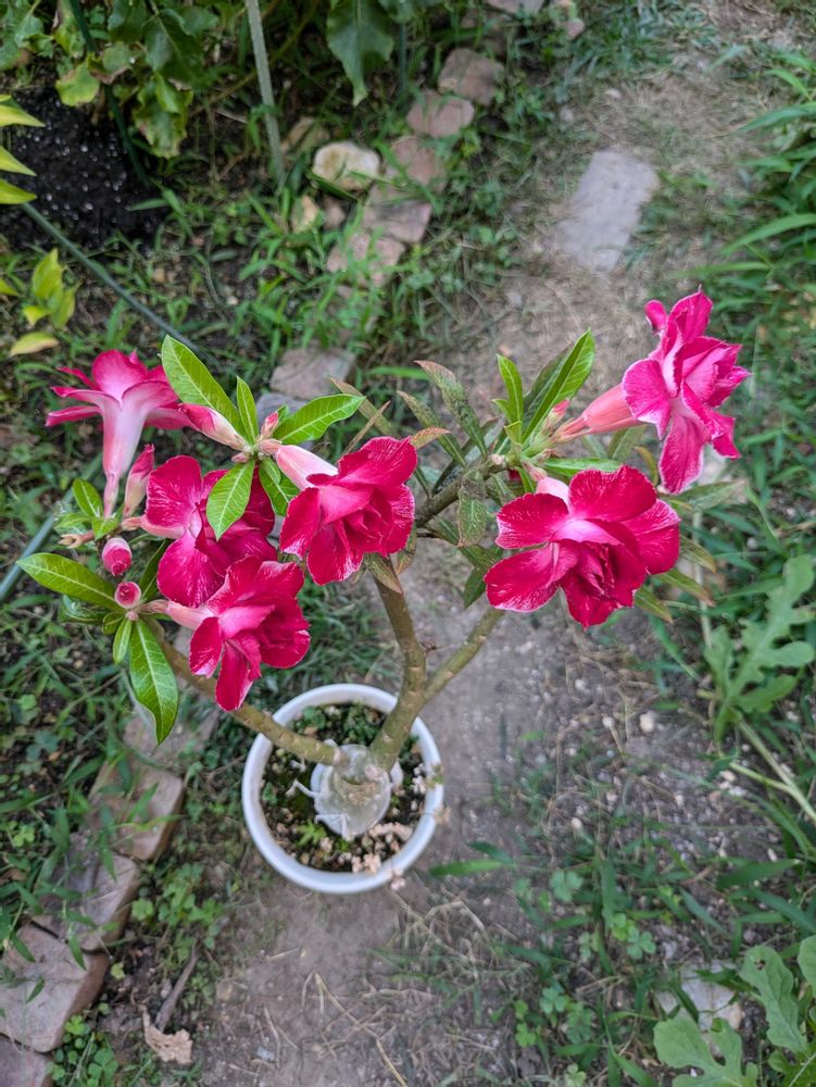 アデニウムは、小さな鉢に入れているのに、よく咲くでしょ。
