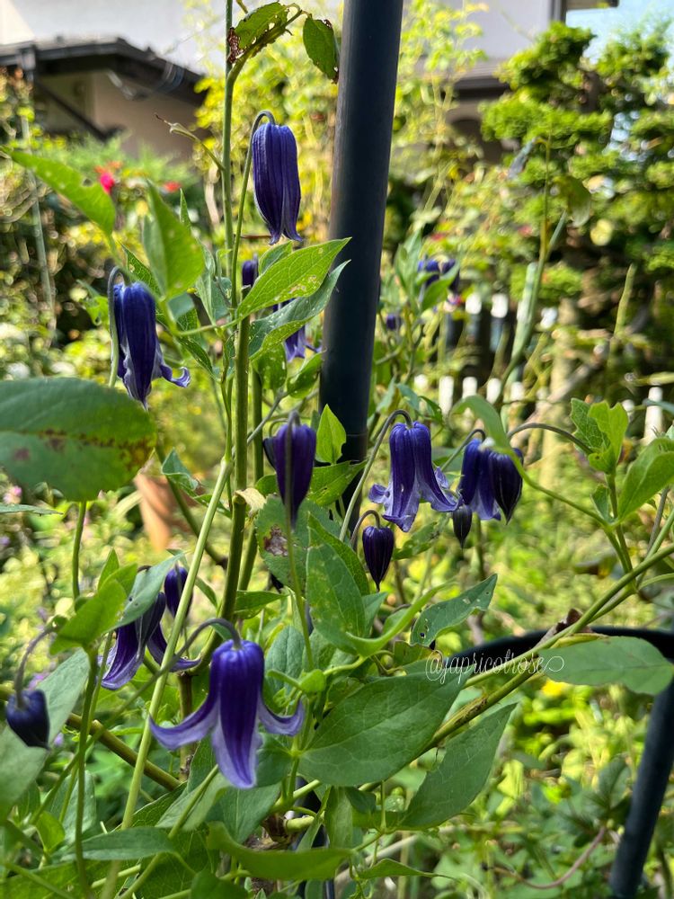 クレマチス籠口もピカピカな花びらが涼しそうに見えます✨