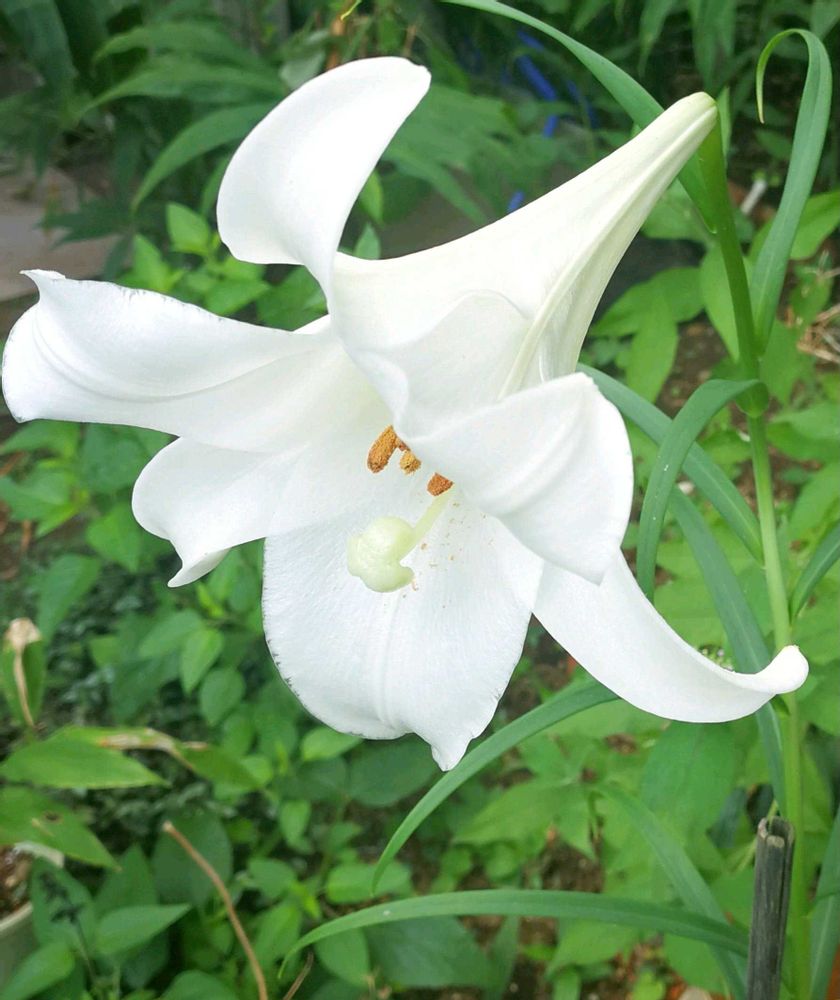 考えなしに植えてしまったミョウガの占領下の中、りんと咲いている貴方、頭が下がりました。カサブランカ様💗