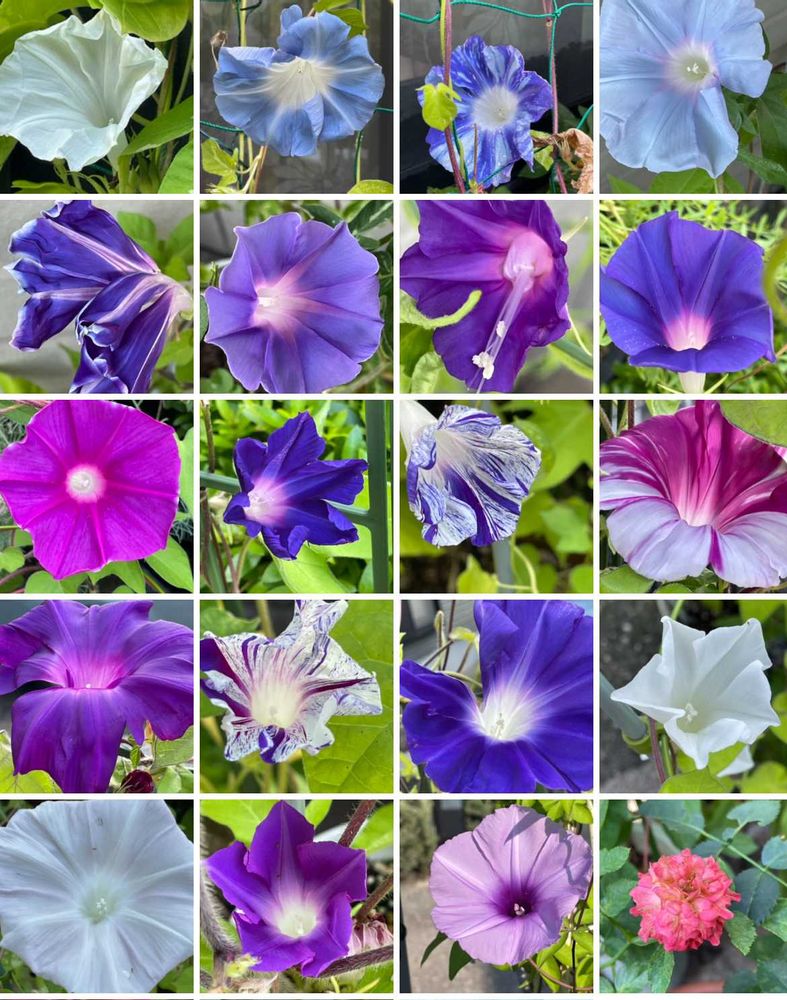 うちは、額縁が白の赤紫の朝顔が一種類しか咲いてないです。