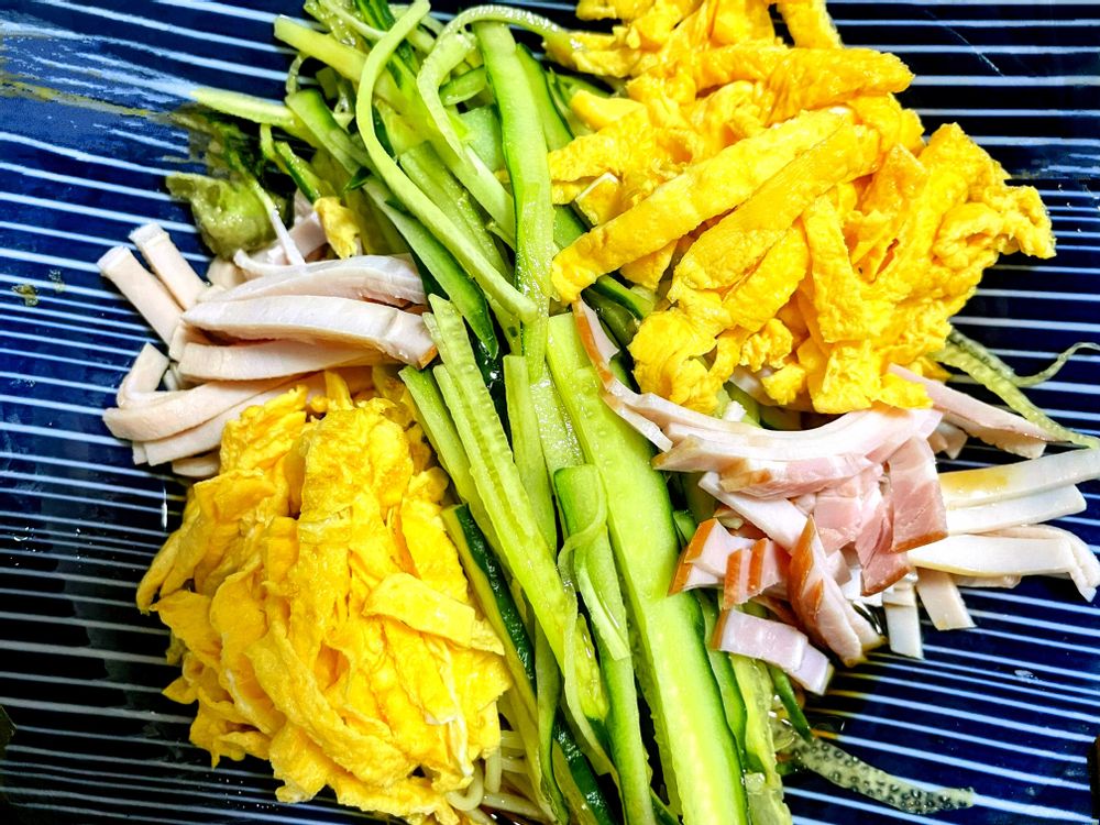 m&oさんの有り合わせでお昼は冷やし中華,ハム胡瓜卵で,トマト、洋がらしは無しの投稿画像
