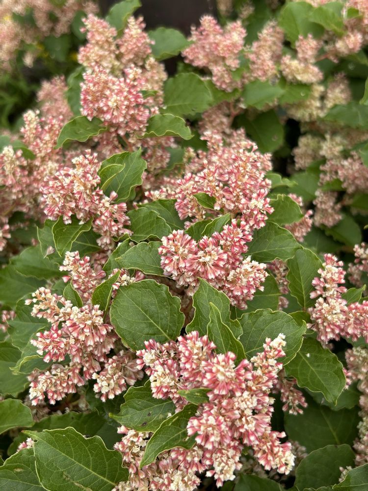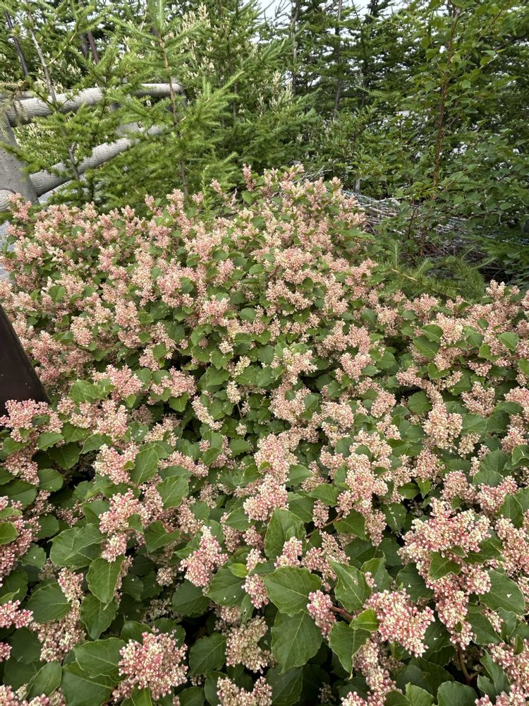 高地に自生し白〜紅色の花を咲かせるイタドリは背丈(20〜30cm)と低く高山タイプに変異したものです。葉は丸く茎は赤い。