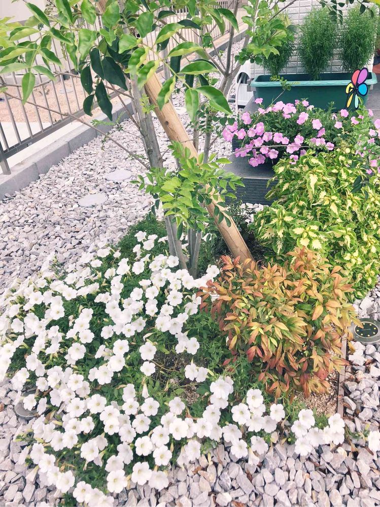 こんばんは😊いいね!を、ありがとうございます😄一面に咲いている白いペチュニア、ステキですね😉いろんな花が咲いていて、いいお庭ですね😊