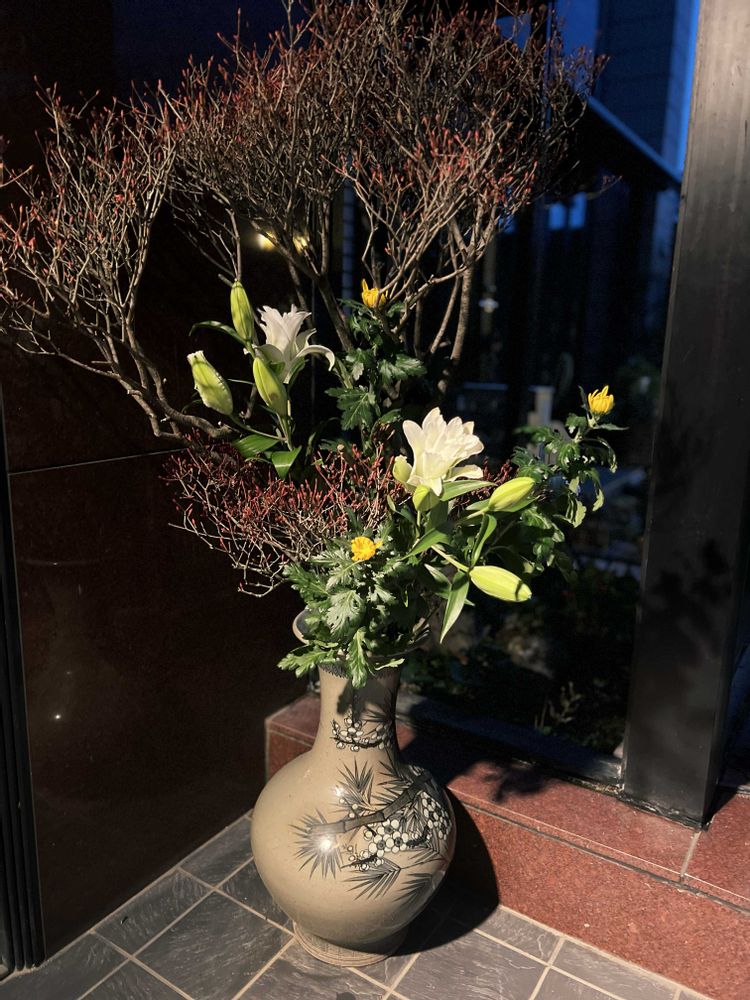 山から枯れ木を持ってきて生花をしてみました。綺麗にいけれました