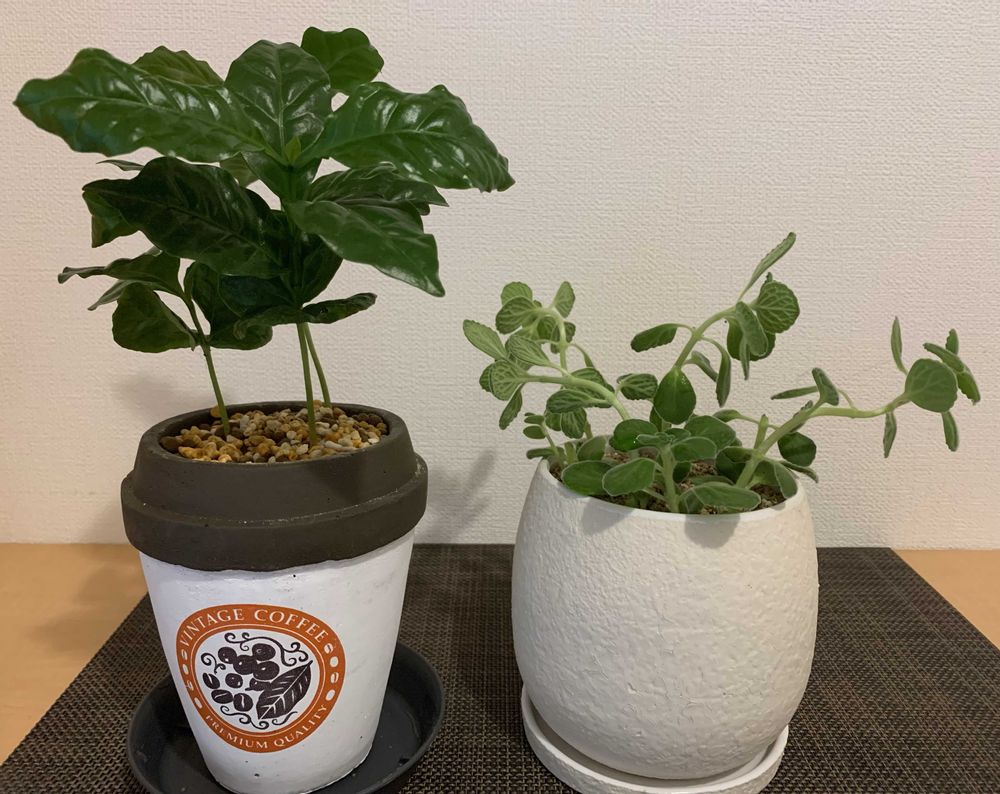 昨日購入した、コーヒーの木とアロマティカス。