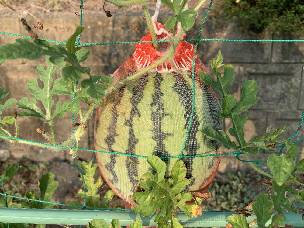 家庭菜園,小玉スイカ,スイカ立体栽培の投稿画像