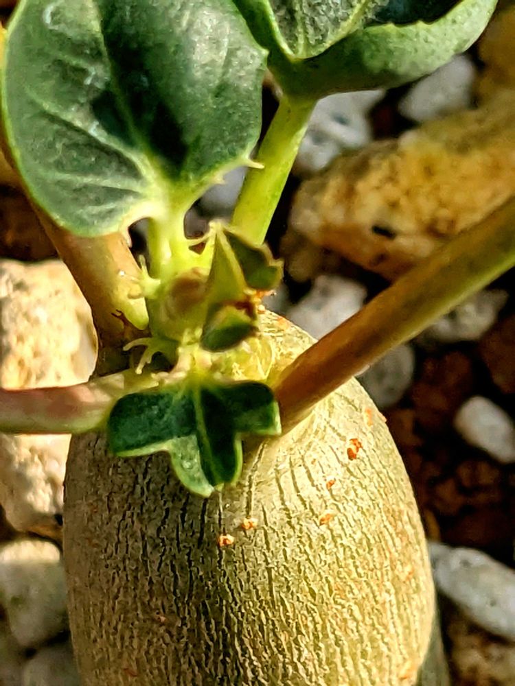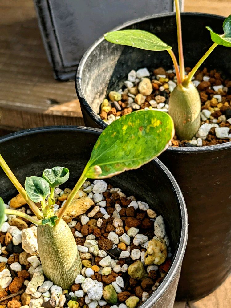 今の感じだと葉は父(珊瑚油桐)に似て 塊根のフォルムは中間かなー。
