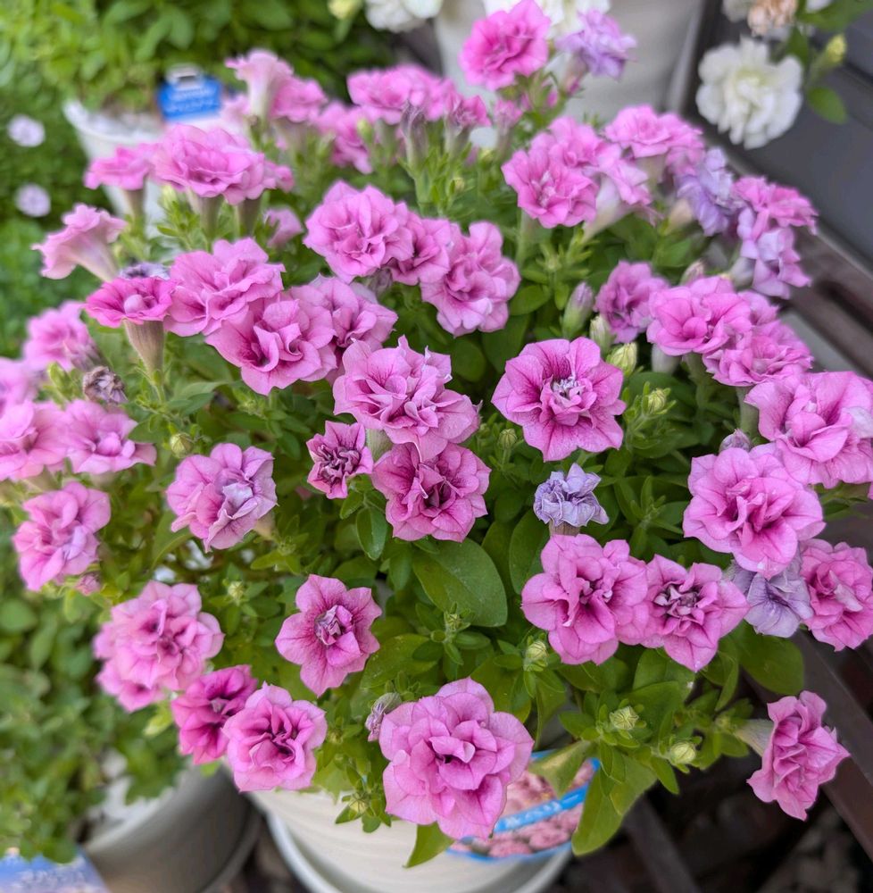 切り戻しから1ヶ月後。また咲いてきました😊八重のペチュニアって豪華さが出ますよね。キレイ。