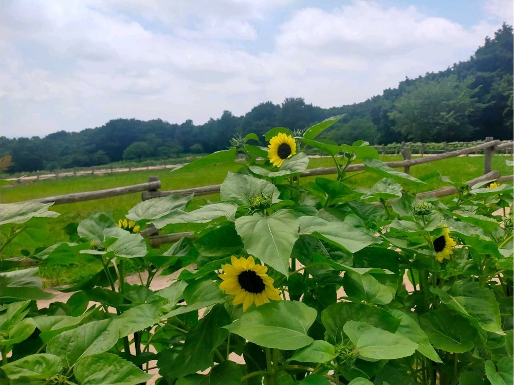 牧場囲む小さなヒマワリ🌻🌻🌻
