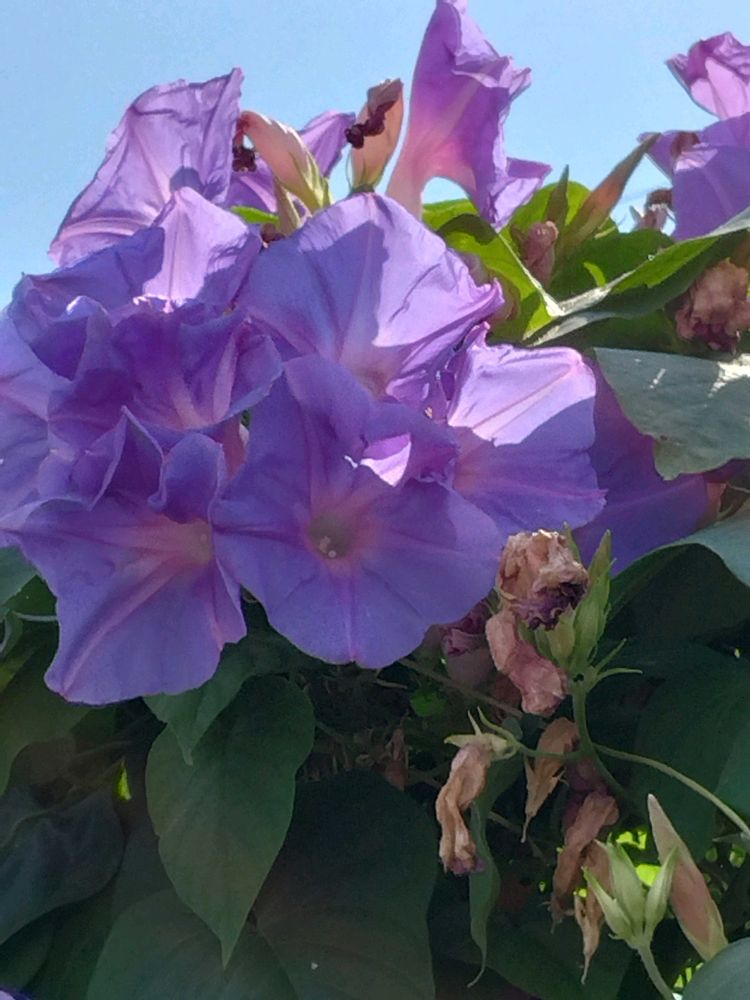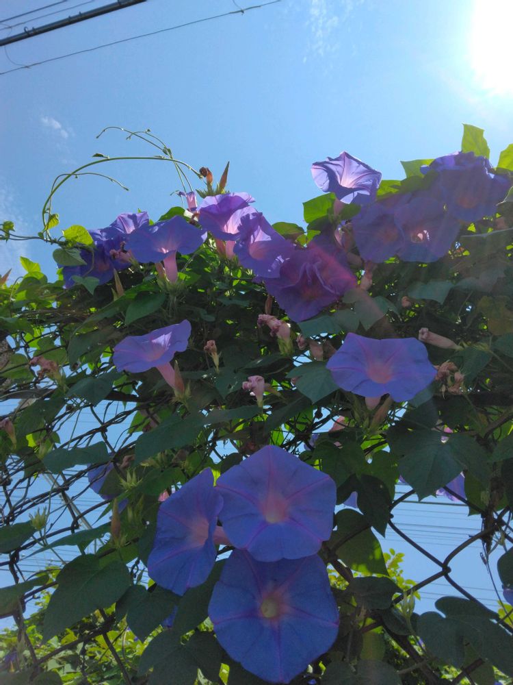 暑い夏にとっても爽やかに😍🤩咲いている朝顔さんのたくさんの花びらと青空は