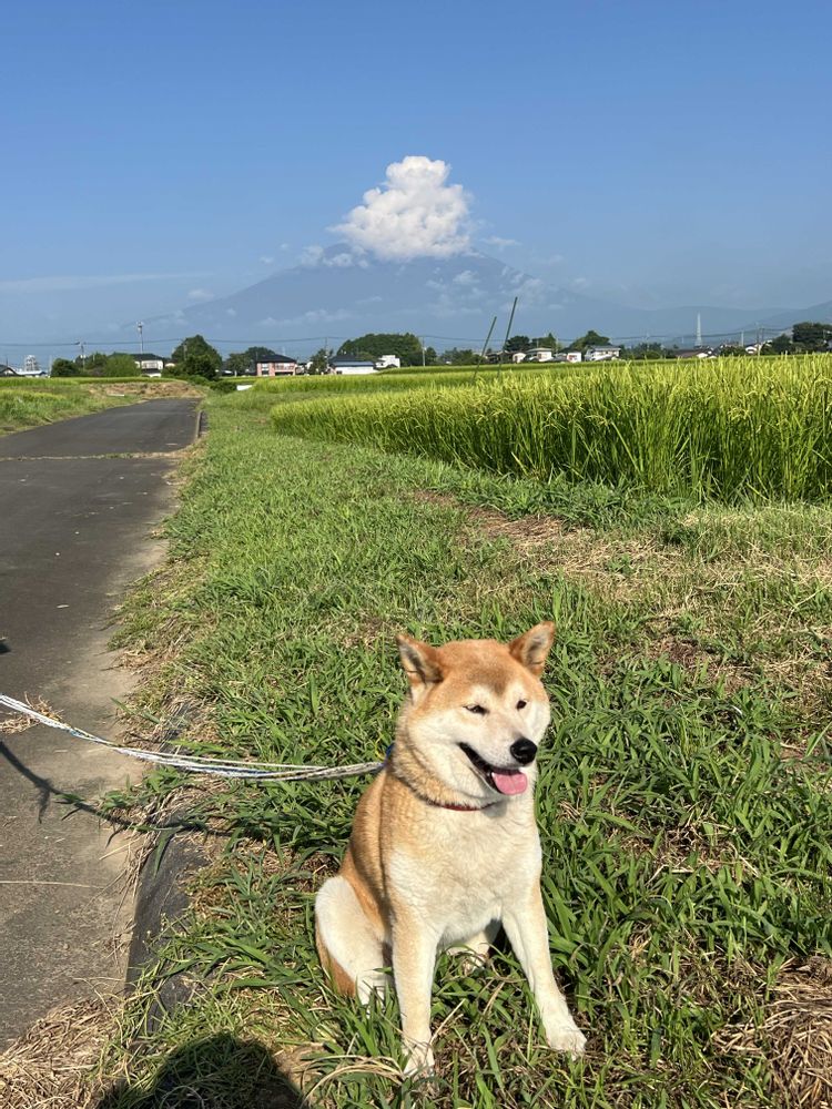 富士山の笠雲,7;30 小山町足柄千保,芝犬 花ちゃんの投稿画像
