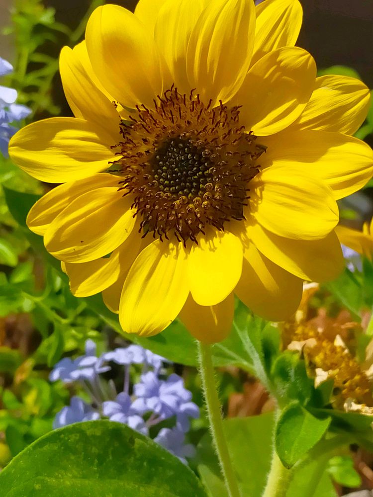 チラリと見えるルリマツリと共に、元気ににっこりしてるかのように咲いていましたね😄