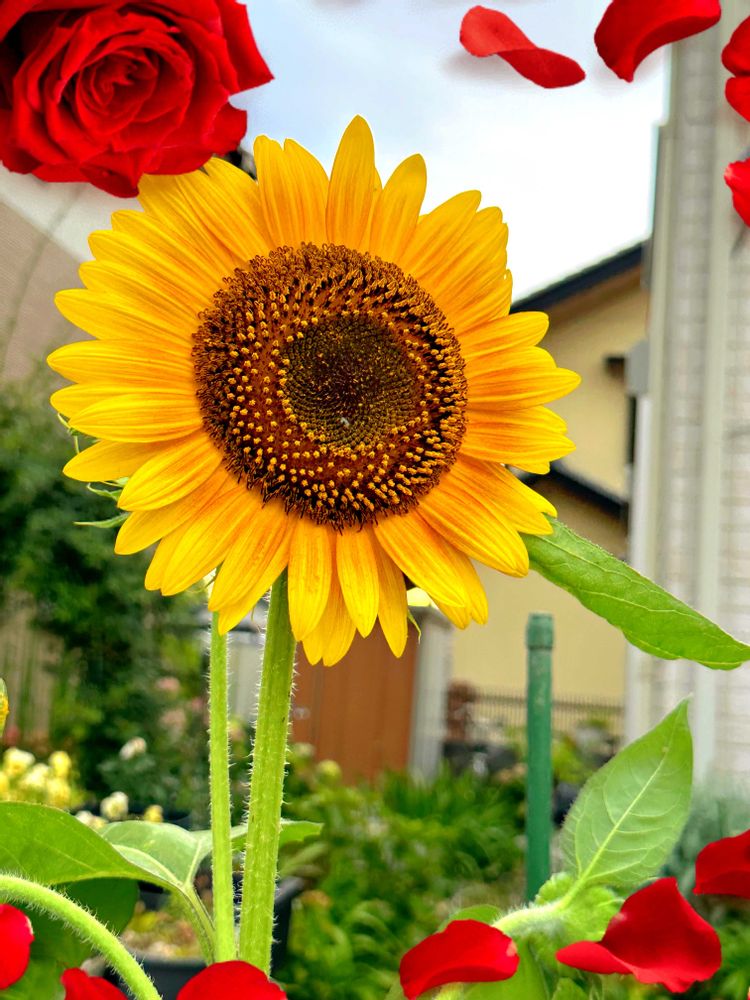 ウチのひまわり🌻は花が咲いているものもあれば、もう種を作り出してるものもあります。