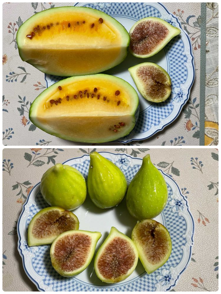 イチジクって、緑色でも熟してるんですね、美味しそう😋