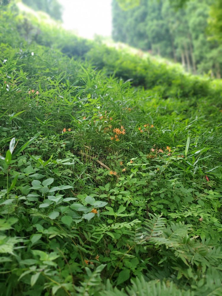 里の山で雑草に紛れて
