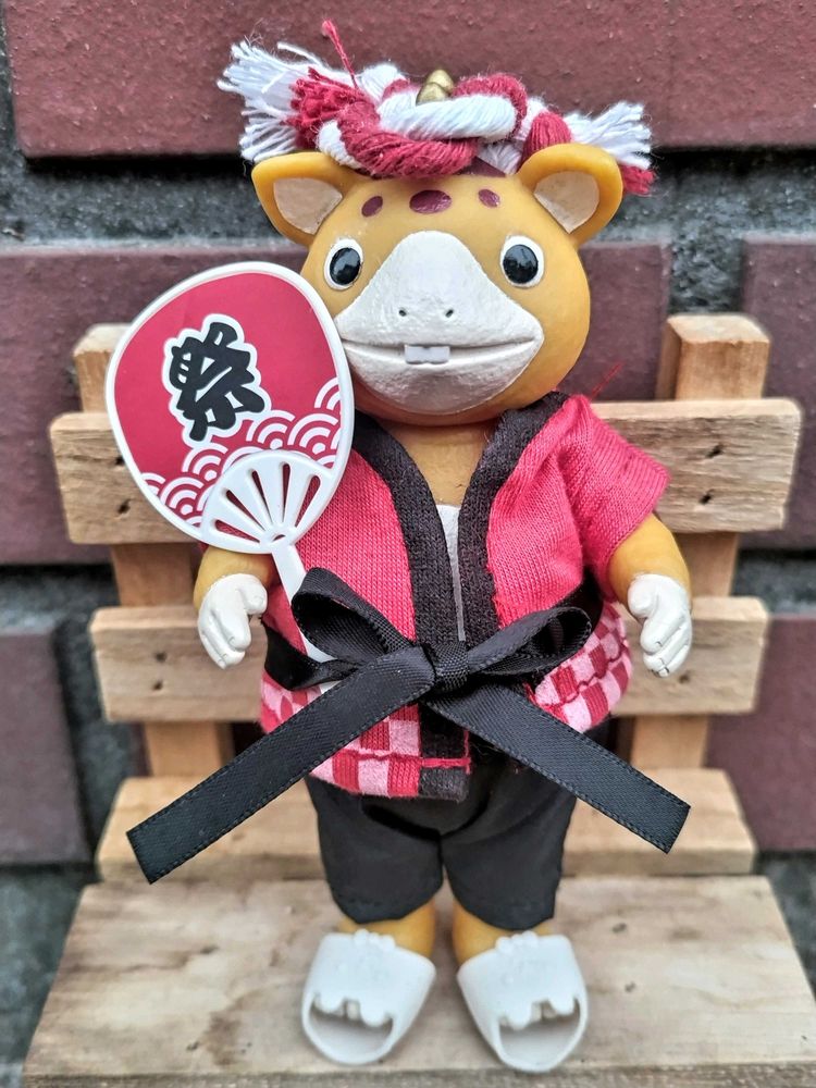 ②今日のブースカ…お祭りの赤い法被にうちわです "Q。('-'。)"