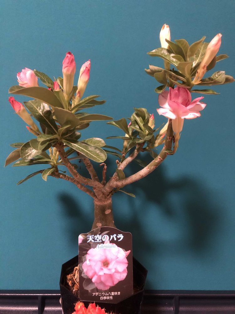 我が家の「アデニウム」にて、今年2回目の「天空のバラ」が開花しました。🌸🌿😄👌