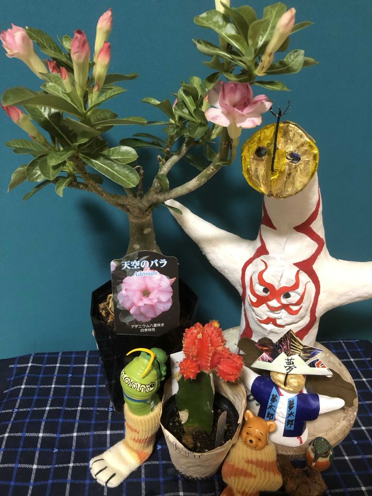 アデニウムに沢山蕾が、付いてて、満開🌸が楽しみですよね((#♡-♡#))