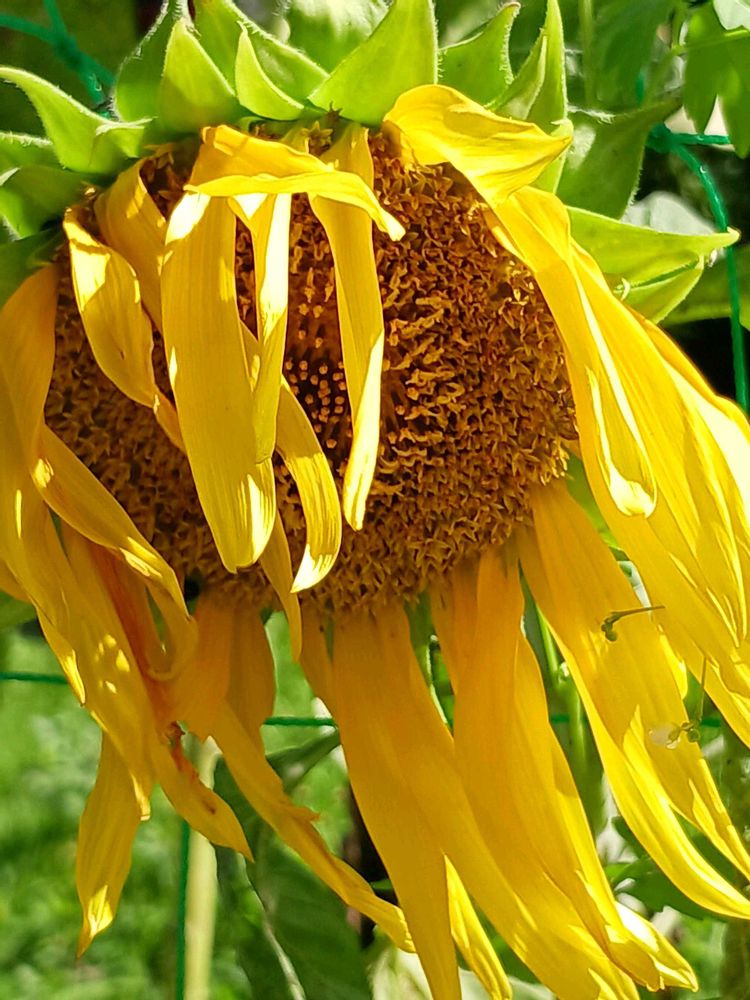 ヒマワリの花びらが長く、ダラっとしちゃって、暑さに疲れたよう。笑