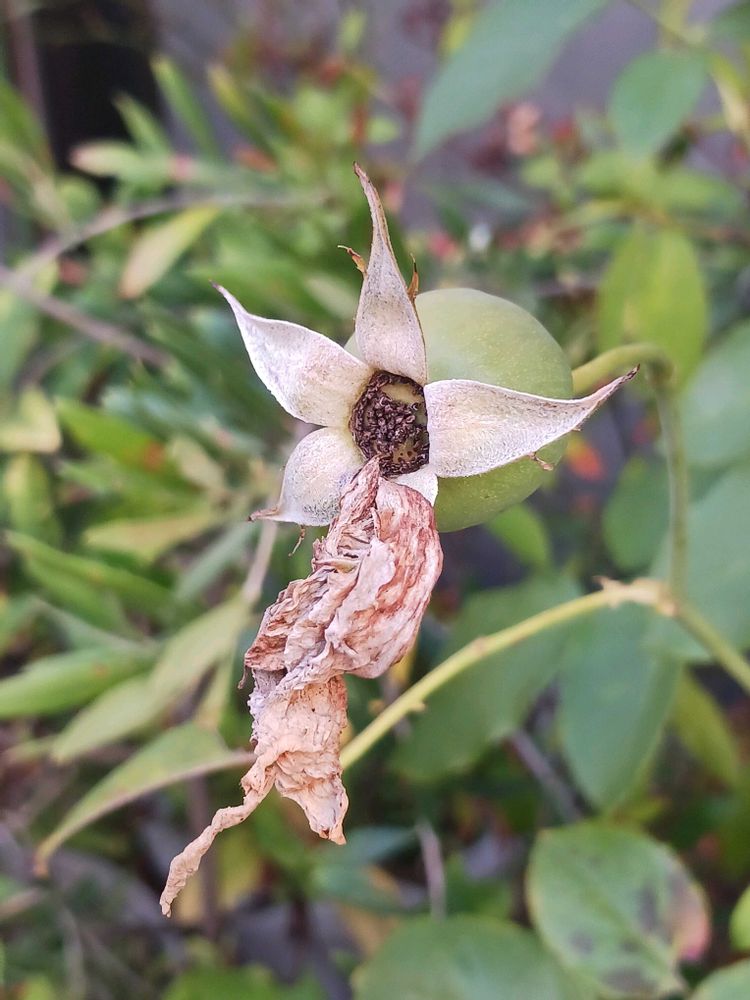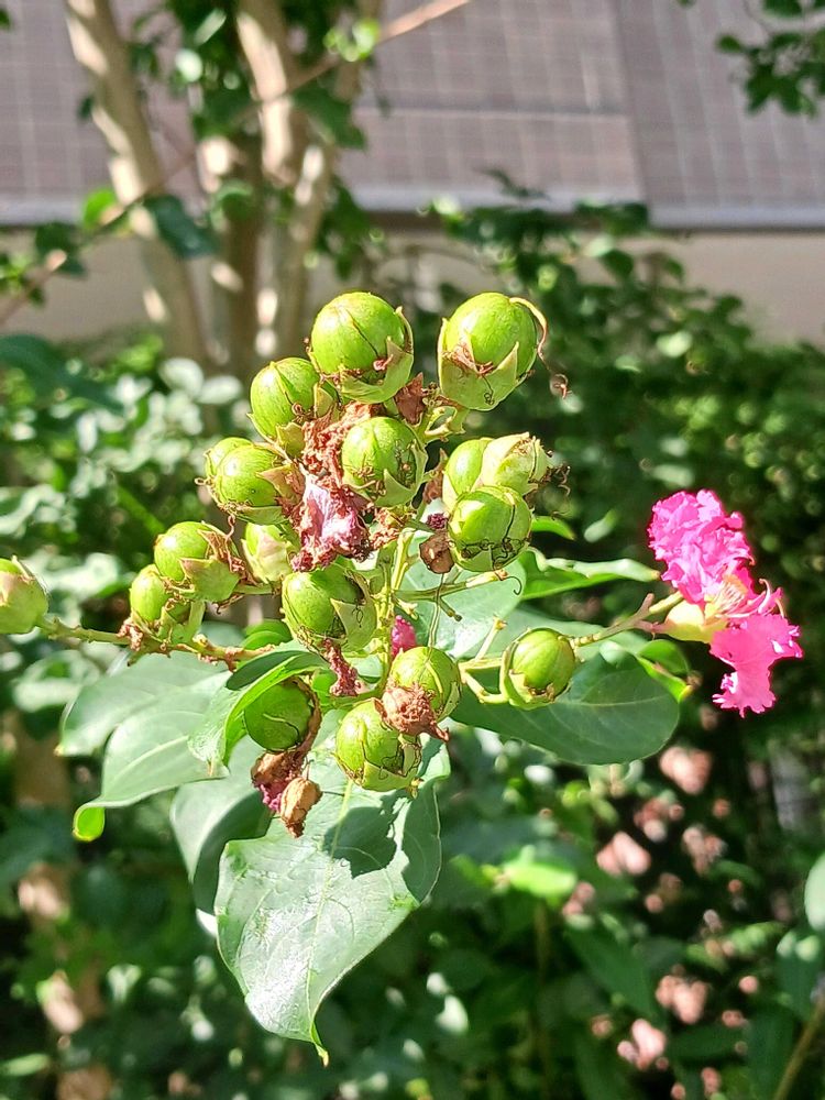枯れた花も、花後の実も、蝉の抜け殻も。