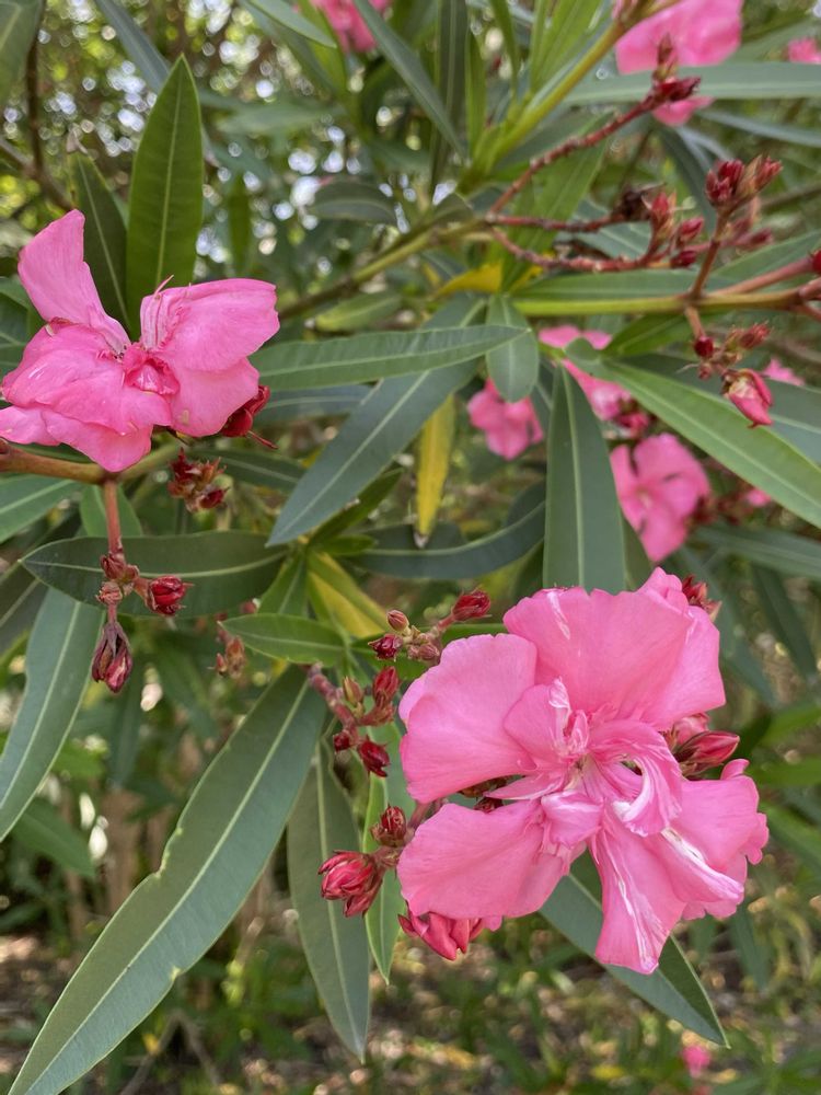 車で走ってると、よく夾竹桃は見かけるのですが、止まって撮影できるような場所でもなく、いつも撮りたいな〜と思いながら眺めています