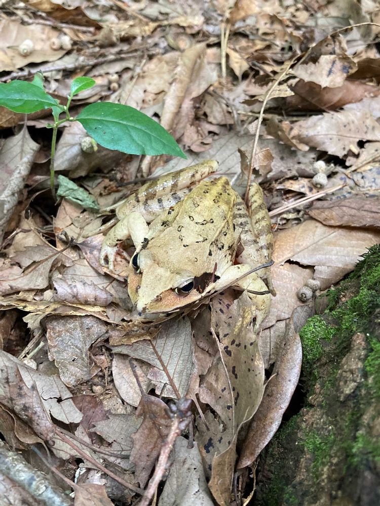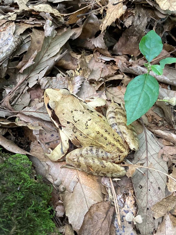 枯葉に隠れたカエルちゃんは🍂🐸🍂
